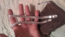Так как это плетение само по себе достаточно объёмное и массивное, то минимальные возможные размеры также будут достаточно большими. Цепочка, изображённая на фотографиях текущей страницы, имеет по сути минимально возможную ширину (около 6мм), а также пропорции. Но длину при этих же пропорциях можно менять как в большую, так и в меньшую сторону, отчего соответственно измениться масса и стоимость.