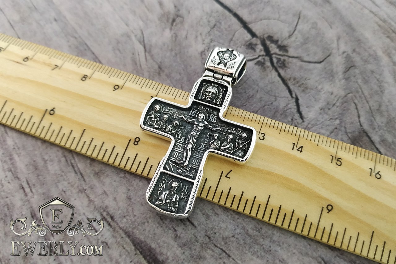 Серебряный крест на шею с чернением. Распятие Христово с предстоящими